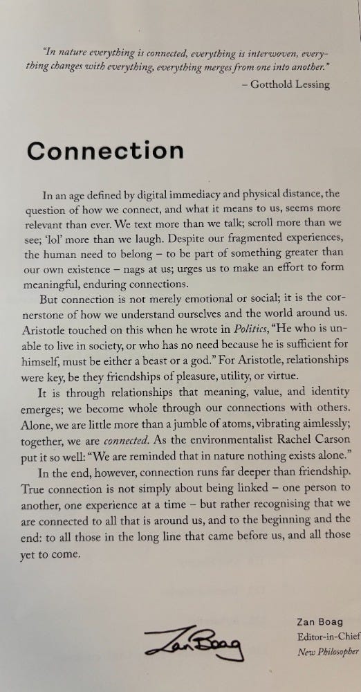 It’s impossible to choose a highlight, but what really stuck with me, yet again, is just how life-giving connection is. So when I saw it was the theme of the latest edition of New Philosopher, I grabbed a copy to read on the Eurostar to Paris.